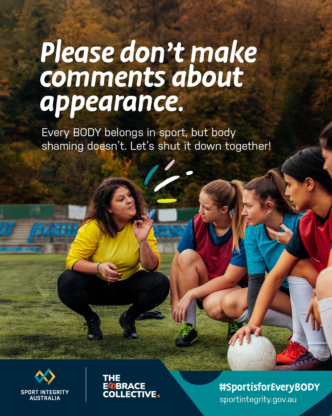 Sport Integrity Australia (SIA) in partnership with The Embrace Collective, have recently launched The Sport is for Every BODY campaign, a campaign that reminds us that sport isn’t about having the “right” body. Sport is about having fun, feeling good, and being part of a team.