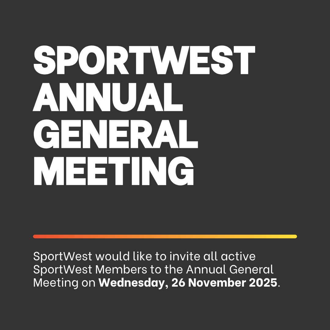 SportWest would like to invite all active SportWest Members to the Annual General Meeting on Wednesday, 26 November 2025. The AGM provides a platform for SportWest and its Members to review the past year's activities, discuss key matters, and plan for the future.
